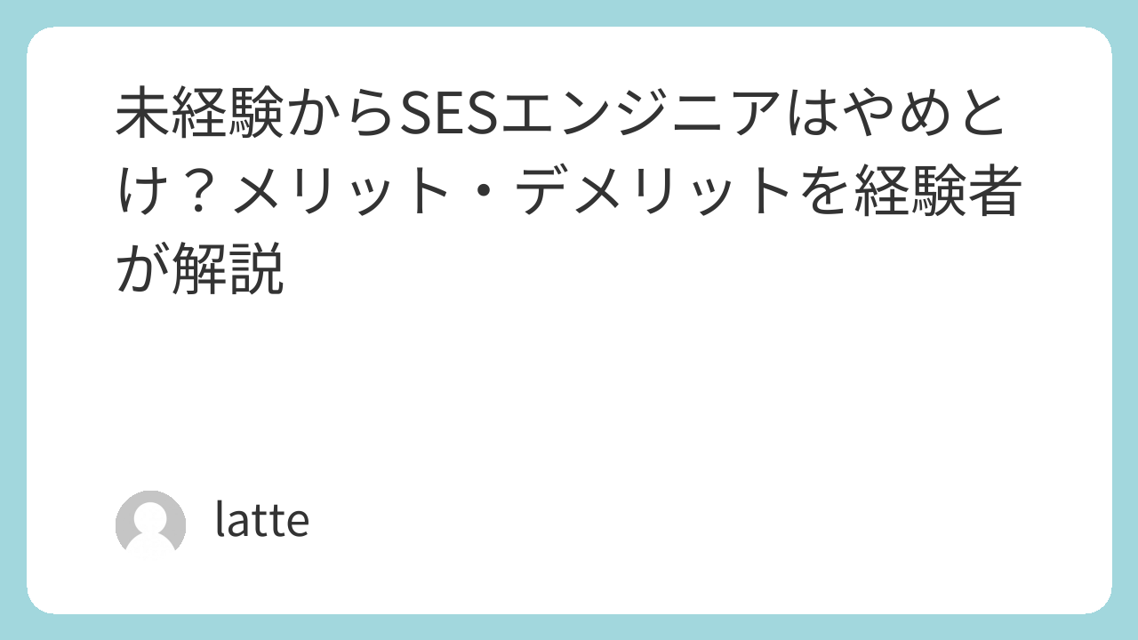未経験からSESエンジニアになろうとしている人、ちょっと待ってください。